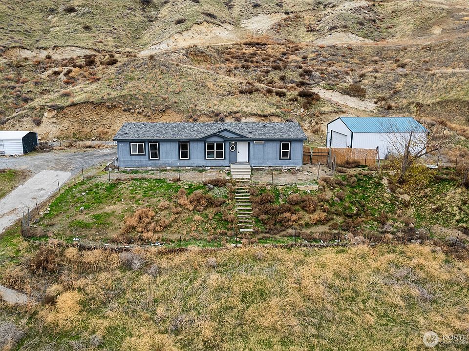 Stunning 17.95 acres on the backside of Wenatchee Heights with an owner-built 1.8-mile off-road loop rising to a 2,000 ft ridge. Enjoy endless recreation on your own property—hiking, biking, snowshoeing, rock climbing, hunting, and paragliding. South-facing site with a 3BD/2BA, 1,456 sq ft manufactured home + office, plus an 806 sq ft insulated shop with mini-split. Ideal for outdoor lovers seeking privacy and adventure. Home served by shared well and septic.