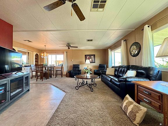 Welcome to 3570 S Canyon Ave — a bright, comfortable, fully furnished 2 bed, 2 bath home in a centrally located 55+ community. This property offers a spacious living room, two dining areas (formal and informal), and a light-filled kitchen with a breakfast bar, gas range, dishwasher, and plenty of cabinet space. The laundry room includes a washer and dryer, and the large primary bedroom features its own ¾ bath. Home also includes newer windows throughout for added efficiency. Enjoy extra living space in the enclosed Arizona room, perfect for relaxing or hobbies. Outside, the star of the show is the tall RV port—ideal for RVs, trailers, or additional covered parking—plus a storage shed and a tiled patio for outdoor enjoyment. Irrigation is available every two weeks in winter and weekly in summer. Located in a friendly 55+ community with an annual HOA of just $840, which includes access to a clubhouse and pool. Positioned along the 4th Ave extension, you're close to shopping, restaurants, medical services, and everything Yuma has to offer.
