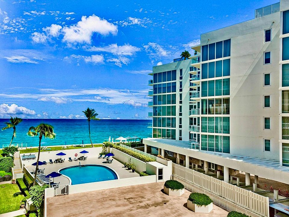Enjoy oceanfront living in this charming 1 bedroom, 1.5 bath condo located in the sought-after Tuscany of Palm Beach building. This beautifully updated unit features a modern kitchen with classic white cabinets, a convenient snack bar, and neutral flooring throughout. The spacious primary suite includes an en-suite bath and sliding doors leading to a private balcony with stunning ocean views. Filled with natural light, this condo also offers accordion shutters for added protection and peace of mind. Coastal living at its best! Tuscany of Palm Beach offers a luxurious coastal lifestyle with an array of upscale amenities designed for comfort and relaxation. Residents enjoy the convenience of a full-time doorman, a modern fitness center, and a billiards room for leisure. The elegant gathering room provides a welcoming space for social events, while the sparkling saltwater pool offers a refreshing escape. A beautifully maintained grassy area overlooking the ocean creates the perfect setting for relaxation and taking in the breathtaking views.