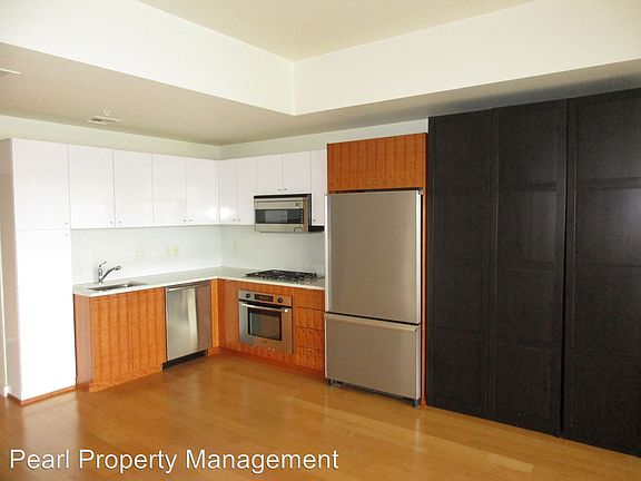 Meriwether West - FREE RENT during month of lease signing/north facing studio with river/bridge views/parking/amenities/utilities - 700 square foot 3rd floor studio condo at Meriwether West in the south waterfront district features 1 reserved parking space, washer/dryer and views of the Willamette River and multiple bridges. Includes a large L-shpaed open floor plan with cherry cabinets, granite countertops, tile backsplash, stainless appliance and built-in clothes wardrobe. Building features include concierge service, clubhouse, guest suite and central garden. No smoking. Cat or small dog ok with additional security deposit. FREE RENT during the month lease is signed. Available Now - 12 month lease $1,350 month includes water/sewer/garbage/gas/electricity/parking $1,000/security deposit + $31.50/application fee + Owner to pay building move/orientation fee of $800 (RLNE3536431)