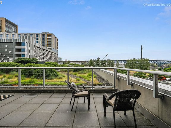 Wonderful 1 bed, 1.5 bath condo in the heart of Southwest Waterfront. Enjoy your own private 300 square foot patio overlooking the roof top garden and Willamette River. Gourmet kitchen with stainless appliances, granite counters, tile backsplash, gas cooktop, and granite island. Primary suite with sizable walk around closet, full bathroom w/tile shower, tiled floors, and granite counters. This units is designed with modern and sophisticated finishes including newer engineered wood floors and large windows that provide plenty of natural light. The Meriwether is a luxurious condominium complex located in the heart of downtown Portland. Residents can enjoy a variety of amenities, including a rooftop garden, a private courtyard, a meeting room, and a front desk concierge service. The complex also features a secure parking garage with assigned spaces for each unit. The location of the Meriwether is ideal for those who want to be close to all the action of downtown Portland. It is nearby some of the city's best restaurants, shops, and entertainment venues. Additionally, the complex is situated near several public transportation options, including the MAX light rail and streetcar lines, making it easy to get around the city.