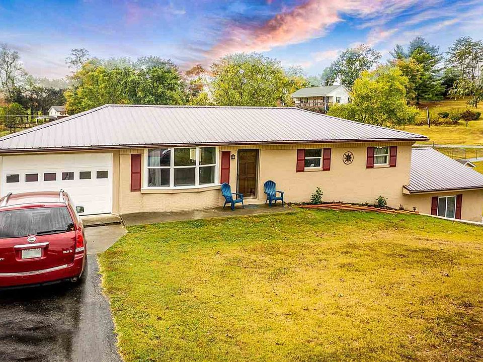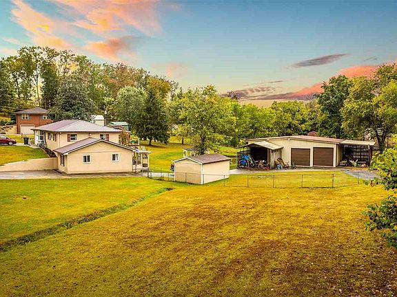 Fenced in backyard, corner lot, 3 car pole with work shop, 1 car garage, gazebo, pond, sunroom, metal roof, remodeled kitchen and finished basement.