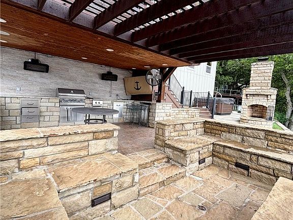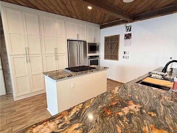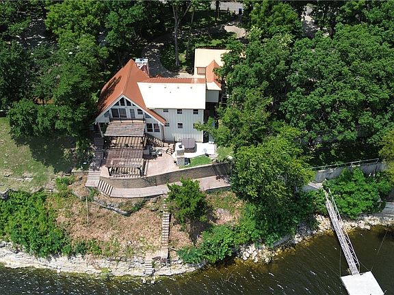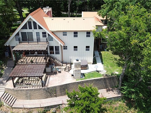 ASTOUNDING PANORAMIC VIEW OF GRAND LAKE! This totally updated south Grand Lake home has an open living and kitchen that has views of the spillways. A primary suite upstairs and downstairs in this 4 bedroom 3.5 bath. It comes complete with a hot tub, theater, plus an outdoor kitchen for gatherings. Has a gated entrance to the home with security system in place. Just steps to 85' of dockable water. The perfect lake getaway!