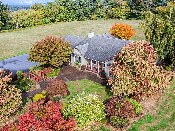 Don't miss this very well maintained spectacular property on long driveway that sits back off street-a rare offering of peace, space, and potential. This charming 3 bedroom, 2 bath, with office, 1,901 sq ft home (built 1998) sits on 7.77 acres offering room for livestock, gardening, and/or future outbuildings. Secluded and landscaped leading to quaint covered front porch. Step inside this warm, open light & bright entry with hardwoods & great room with dramatic high vaulted ceilings with skylights, walled brick frpl & carpet, & tiled dining/eating area with door to deck with views of lush surroundings. Vaulted kitchen has tile floor, eat-bar, blt-in appl, under counter lighting & corner window over sink. Spacious office with blt-ins. Master suite has private bath and closet with organizer. The home’s layout is comfortable and functional, with lots of natural light. Outside, the expansive parcel provides a deck & privacy, acreage for projects or hobbies, and a country-feeling retreat just minutes from Gresham, Sandy & Hwy 26. The home sits up on a bluff-be sure to walk out to the deck at the end of the property as there is an amazing view of the Sandy River. Oversized 2 car garage with epoxied floors. Well-maintained and move-in ready, this is the kind of property buyers and agents search for but rarely find. Homes like this don't stay on the market long.
