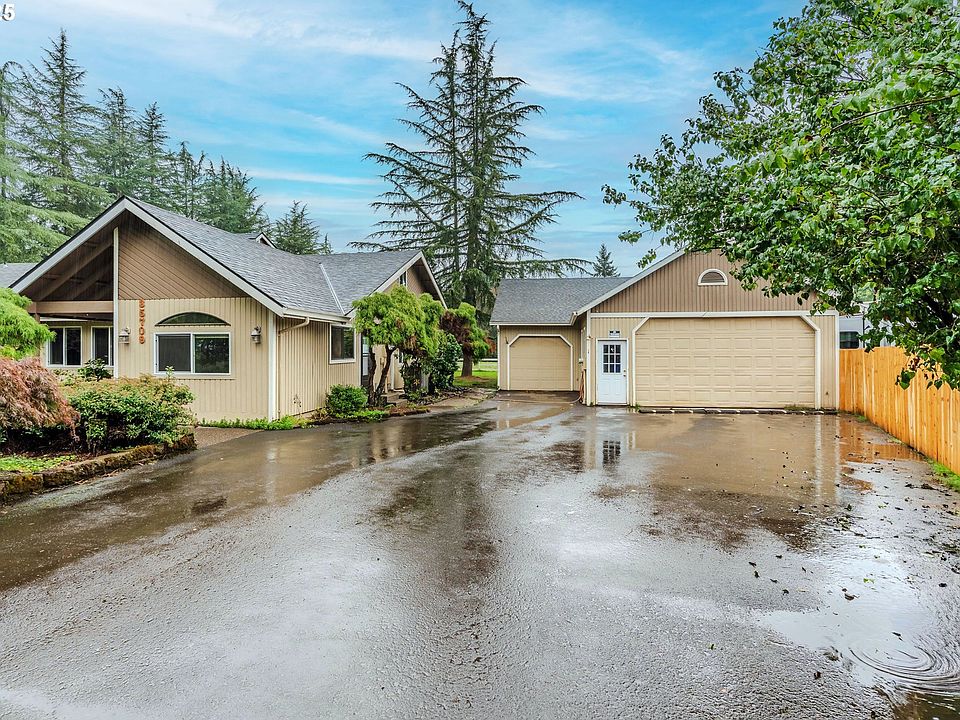 Long private driveway leading to this spectacular home nestled on a peaceful secluded 2.24 acre lot, in the desirable Barlow School Dist. This light & bright, open home offers the perfect blend of privacy and convenience. With 3 bedrooms, 2 bonus rooms, 2 full baths, & 2,542sf of living space, this home provides ample room for both family living and entertaining. The spacious layout features living room with vaulted high ceiling & windows with views of the lush surrounding, & stairs to a vaulted loft perfect for Theater or add'l Bedroom. Open country kitchen with lots of cupboards/counter space + pantry, & a family/dining area with laminate floors. Spacious vaulted master suite with french doors opening to patio, bath with jetted tub, walk-in shower & dbl sinks, & walk-in closet with organizer. Spacious vaulted bonus room could be bedroom/office. Large newer windows fill the home with natural light, highlighting the tasteful finishes throughout. Newer roof, electrical panel, windows, carpet & appl. Outside, you'll find a serene yard with a couple patios perfect for outdoor gatherings & plenty of space for gardening or recreational activities. The property also includes every man's 1632sf detached dream garage/shop with 220 elec, 2 stalls & a tack room. Fenced pasture perfect for animals. RV parking and electrical hook-up. Located just minutes from major highways, shopping, and schools, this home offers the tranquility of country living with easy access to city amenities. This home is a must-see. Don’t let this rare gem slip away—homes like this, offering both comfort and charm, don’t come along often. Schedule your showing today and make this dream home yours before it’s gone!