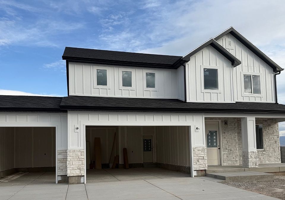 CHECKS THE BOXES plus some! Den/Living/Office whatever you call it, on the main floor, G I A N T great room, Extended kitchen nook- bring that big table!, Large kitchen island with quartz countertop, loft/man cave/gamers den (another you name it flex space), smart bathroom design to eliminate the morning chaos. Cool and bright colors, Stone look composite fencing back and one side. Syracuse 50 acre park across the street in the back, leaves gorgeous mountain views. Ready to move in January 2026!
