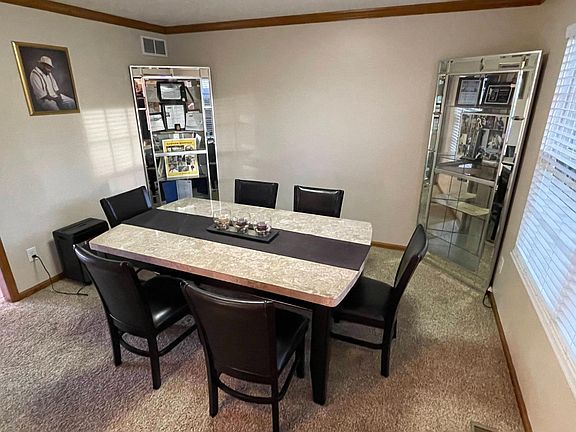 - Features: Kitchen Island, Pantry, Tile Floor, Walkout, Window Treatment, Wood Cabinets