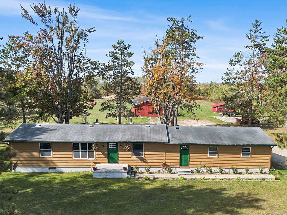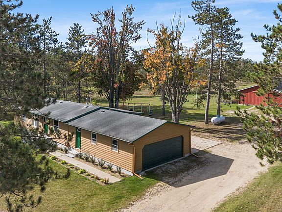 This cedar sided ranch style home features 3 bedrooms, 2 bathrooms, a basement, and an attached 2 car garage. Recent updates include a new furnace, wood stove for efficient heating, plus a new well and gutters for added peace of mind. The 17.98 acre property offers a large pole barn, chicken coop, and wood storage shed. Outdoor enthusiasts will love the private motocross track and direct access to Snowmobile Trail 4 for year round recreation.