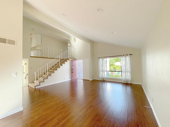 Beautiful 4 bedroom/3 bathroom home located in the much desired Irvine community of College Park. As you enter the home you will immediately notice the high ceiling in living room and dinning room. LED recess lighting throughout the house and oversized windows. The large living room flows seamlessly into the dining area and kitchen which includes granite counter tops. The first floor includes a step-down family room with fireplace and a bedroom. The family room opens to the backyard through a slider door. The spacious backyard with fruit trees is perfect for family barbecues and/or entertaining. The second-floor master bedroom includes a balcony and a large walk-in closet. The second floor also contains 2 large additional bedrooms. All bathroom come with new cabinets and granite counter tops. The home located close to parks, schools, markets and an abundance of restaurants. 1 year