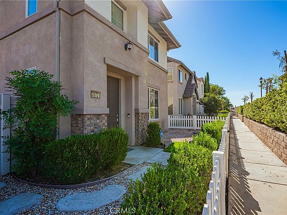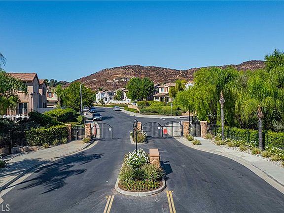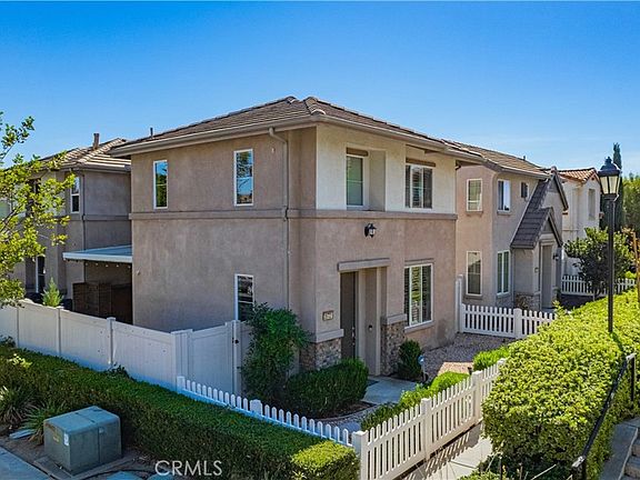 Welcome to the Gated Community of Bel Flora in the heart of Murrieta. This Charming single family home offers a warm inviting atmosphere with an open floor plan, hardwood floors, cozy fireplace complemented by stylish shutters. The spacious kitchen features a center Island with granite, 4 burner stove and newer black stainless fridge and dishwasher. It's a perfect area for cooking and entertaining. Step outside to a cozy patio with a built in fire pit, waterfall, covered sitting area, ideal for relaxing and entertaining year round. Upstairs you'll find 3 bedrooms, including the primary suite that offers a walk in closet for all your storage needs. The primary bath is equipped with a soaking tub, walk in shower, and dual sinks. All bedrooms have carpet and wood blinds, and walk in closets. The attached 2 car garage with direct access provides ample storage with built in shelves for organization. A small front yard with a classic white vinyl picket fence adds to the curb appeal and charm. This home is conveniently located within walking distance to the association pool and spa, and outdoor picnic area adding easy access to relaxation and recreation. The community provides a safe and serene environment, enhanced with a playground, sidewalks, street lights, and plenty of parking. Beautifully landscaped with abundant trees and lush foliage. Close to shopping, schools, 215 Freeway, Costco, and lots of new restaurants. Has an EV charger in the garage for an electric vehicle.