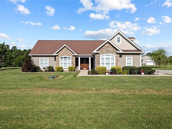 Custom-Built Craftsman on 10 serene acres – NO HOA / NO city taxes! Just ½ mile outside Mebane city limits, underground electric, natural gas, and cable internet/TV with a true country feel. Sunroom with Panoramic views. Home features 400-amp service, new whole-house natural gas generator (3/25), dual-fuel HVAC, central vac, tankless water heater, UV water filtration, 3 car garage. Interior highlights include 2 stone fireplaces, custom cabinetry with slide- outs, automated blinds, and remote TV lift in the den that lowers below the mantle. 1,800 sq?ft pole barn (2022) includes a 6” slab, 100-amp service, 10’x18’ garage door, and 12’x20’ barn door—ideal for equipment, hobbies, or livestock. Newly planted Thuja trees for privacy, abundant wildlife. 5 mins to outlets & shopping/dining and 3 mins to schools. Community restrictions: 10-acre min, livestock permitted, road maintenance agreement, and bulk cable/internet paid annually(~$80–$100/mo). See disclosures for details.