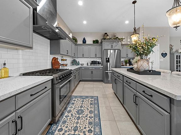 Nearly an acreCustom shuttersElegant quartz countertopsTile floorsCathedral ceilings