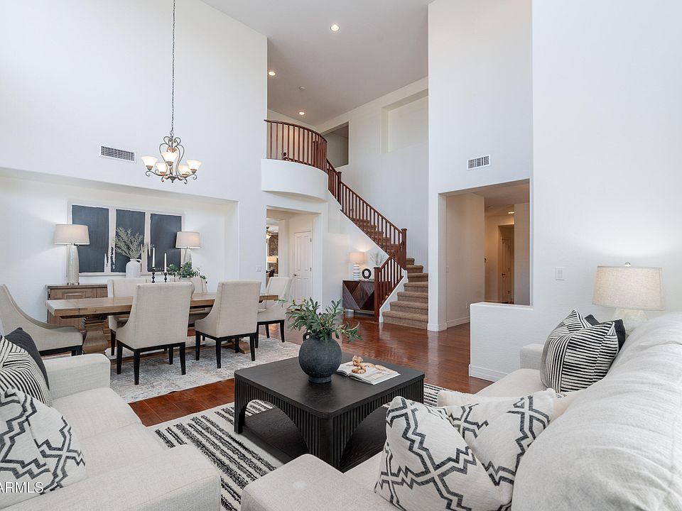 Gorgeous Symphony floor plan in the desirable lake community of Old Stone Ranch! Grand formal living & dining room. Extremely versatile w/two staircases, 4 bedrooms, 3.5 bathrooms, 2 bonus rooms & oversized 3 car garage. Large gourmet kitchen opens to spacious great room & kitchen nook. 1st floor is an entertainers dream complete with nook, den, pocket office, large bonus room w/ built bar, wine cooler, & lots of storage. Large primary retreat w/additional space great for workout equipment, nursery, or office. Oversized primary bath w/spacious dual sinks, separate tub & shower & HUGE w/in closet. Additional upstairs bonus room that can be used as a theatre room or bedroom. Oversized backyard boasts sparkling blue pool, luscious green turf, and large covered patio.