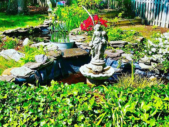 Gorgeous renovated 5 BR, 3.5 BA home nestled among shade trees on a beautiful landscaped lot in great location! Front porch, 2 car garage. Hardwds, neutral paint, crisp trim! Formal LR, DR w/bay window, stunning renovated white kitchen w/granite, SS appls, French doors to deck, fenced yard w/pond, trees, 8 zones irrigation system, security cameras! House windows replaced in 2018. Fam rm w/cozy FP. Lge MBR has luxury BA w/skylights. LL has huge rec rm, den/5th BR, full BA!