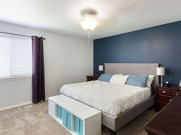 Great Location. Easy commute. Beautifully updated kitchen cabinets, tile backsplash, quartzite counters, and top of the line appliances. Master Suite with his and hers closets. Laundry room with craft/sewing/office nook. Finished basement with theater-wired living room. Perfect patio for BBQing. 3 separate living areas, 5 bedrooms, 3 full baths. Private HOA maintained park! Close to shopping, freeway access, restaurants, public parks, museums, golf, and jogging paths. Even FREE Vivint internet!