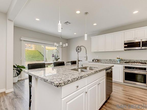 This modern turn-key home located in Horse Creek Ridge offers 3 Bedrooms, 2.5 Bathrooms and 1799 sq ft. Built around an open living concept, this light, bright and open home has been designed to maximize space all the while offering quiet privacy. Custom upgrades include stainless steel appliances, designer granite countertops, pinnacle lighting, upgraded baseboard and window casements as well as custom laminate flooring throughout the downstairs. The oversized master bedroom is open and private leading to the master bath, complete with custom travertine flooring, a soaking tub, and an enclosed shower. This Fallbrook community offers a club house, two large pools w/ an outdoor entertaining area. Just minutes from I-15, hiking and horse trails, this amazing home offers it all.