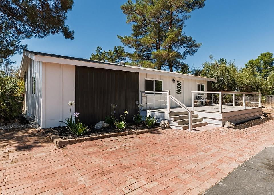 Wonderful investment opportunity in the heart of Temecula’s renowned wine country! This 2.71-acre property is perched atop a private driveway and offers two residences: a beautifully updated 3 bed/2 bath manufactured home plus a recently renovated 1 bed/1 bath unit above the detached garage. The main home has been extensively refreshed inside and out — featuring new Trex decks in the front and back, all-new flooring, new drywall on every interior wall, and new siding. Fresh paint throughout the property gives it a bright, welcoming feel. The kitchen shines with a new countertop and backsplash, while both bathrooms include new vanities and toilets. Surrounded by mature eucalyptus and olive trees, the property offers a park-like setting with sweeping views. Whether you’re looking to build your dream home, enjoy rental income, or create a multi-generational retreat, the possibilities here are endless. With plenty of space for RV parking, storage, animals, or future expansion, this versatile property is ready to welcome you home.