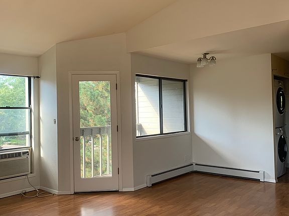 HEAT IS INCLUDED! This bright and beautiful top floor condo with vaulted ceilings, new neutral paint, and an open floorplan is now available. Two bedrooms, two full bathrooms are perfect for a couple, young family, or roommates! This unit has updated appliances in the kitchen, stacked washer and dryer, wood flooring throughout, a wood burning fireplace, a reserved covered parking space, ample guest parking, and a deck with southwest exposure. (Did I mention that HEAT is INCLUDED?!) There is air conditioning in the living space and a ceiling fan in the bedroom.