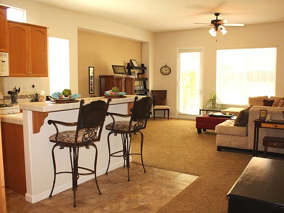 Immaculate inside & out! Don't miss this highly sought after Elliott Merlot model in the Alexander Collection of Stone Creek featuring a bright & open floor plan w/ 3 beds / 2 baths, Great Room plus a dedicated dining room & 2 car garage. Lots of upgrades including attractive rock elevation, tile flooring, custom window coverings, & designer paint. The spacious island kitchen & adjoining Great Room access the private covered patio & beautiful low maintenance yard, perfect for summer BBQ's & friends.