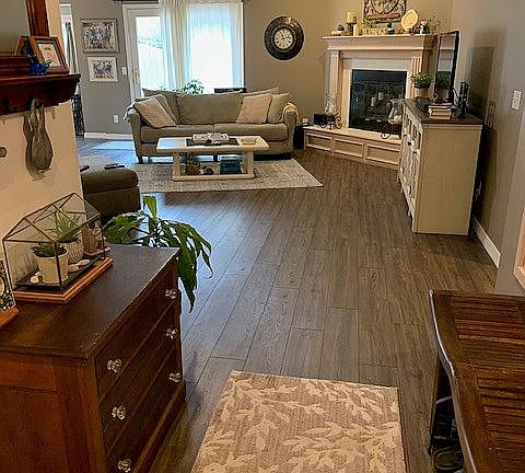 Many updates and upgrades over the past few years--LVP flooring, bathrooms, lighting and ceiling fans, quartz kitchen counter, refinished deck w/pergola, newer water heater, thermal windows, seamless guttering, built-in entryway bookcase, gas fireplace, jetted tub, shed, and more.
