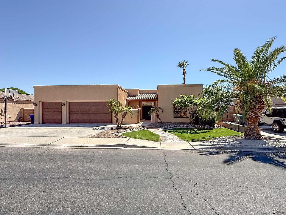 Welcome to this spacious and inviting 4-bedroom, 3-bathroom home featuring a highly desirable split floor plan for comfort and privacy. Step into the open living room with elevated ceilings, built ins and a cozy fireplace, perfect for gatherings and relaxing evenings. The thoughtfully designed interior boasts soaring ceilings throughout, creating an airy and expansive feel in every room. Giant master suite offers tons of square footage with french doors leading to the patio. Large walk in closet with tons of storage space, double sinks as well as soaking tub and separate shower. A three-car garage with air conditioning offers both functionality and comfort, ideal for storage, hobbies, or a workshop. Outside, enjoy your own private retreat with an inground pool and Jacuzzi, perfect for year-round entertaining. The pool area is separately fenced, adding peace of mind and versatility for families and guests. This home combines comfort, functionality, and resort-style amenities — all in one incredible property.