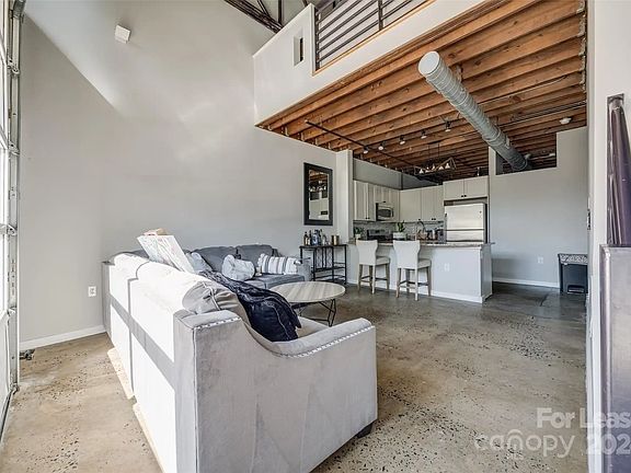This townhouse/condo features spectacular 20ft ceilings, entry level concrete floors, upper level hardwood floors, gas stove, and a garage door/glass wall that serves as the living room wall and opens up to the front patio. Privacy screen provided. Kitchen features stainless steel appliances and granite countertops with space for bar stools. All rooms feature ceiling fans with overhead lighting. Downstairs bedroom is ideal for a home office or guest room with adjacent, updated hall bathroom. The upstairs master bedroom and bathroom are connected to a spacious loft that can serve as a second living room, home office, den, workout space or study/crafts area. Located only a short walk to the main intersection of the NoDa Arts District at 36th and N. Davidson with an abundance of dinning and entertainment options at your fingertips. The LYNX Blue Line Light Rail stop is in close proximity (7-10min walk). Included in rent: Spectrum high-speed Cable and internet, water, trash, HVAC quarterly maintenance, on-site parking, landscaping, shared gas grill & fire pit area and shared garden. Note that the property is unfurnished. The pet policy is negotiable for an additional fee and lease term is flexible. Property available now with negotiable lease period. Tenant is responsible for monthly rent along with additional charges for electric and gas. All other utilities and amenities are included within monthly rent (example: high speed wifi). First month rent and security deposit due upon move-in.