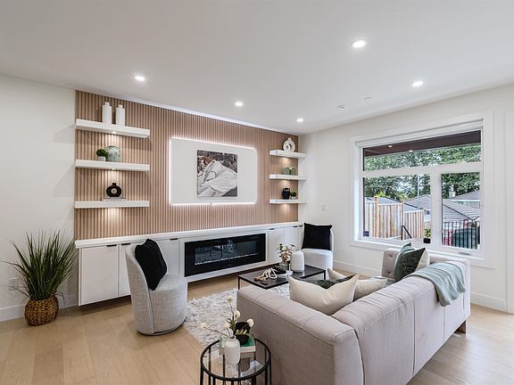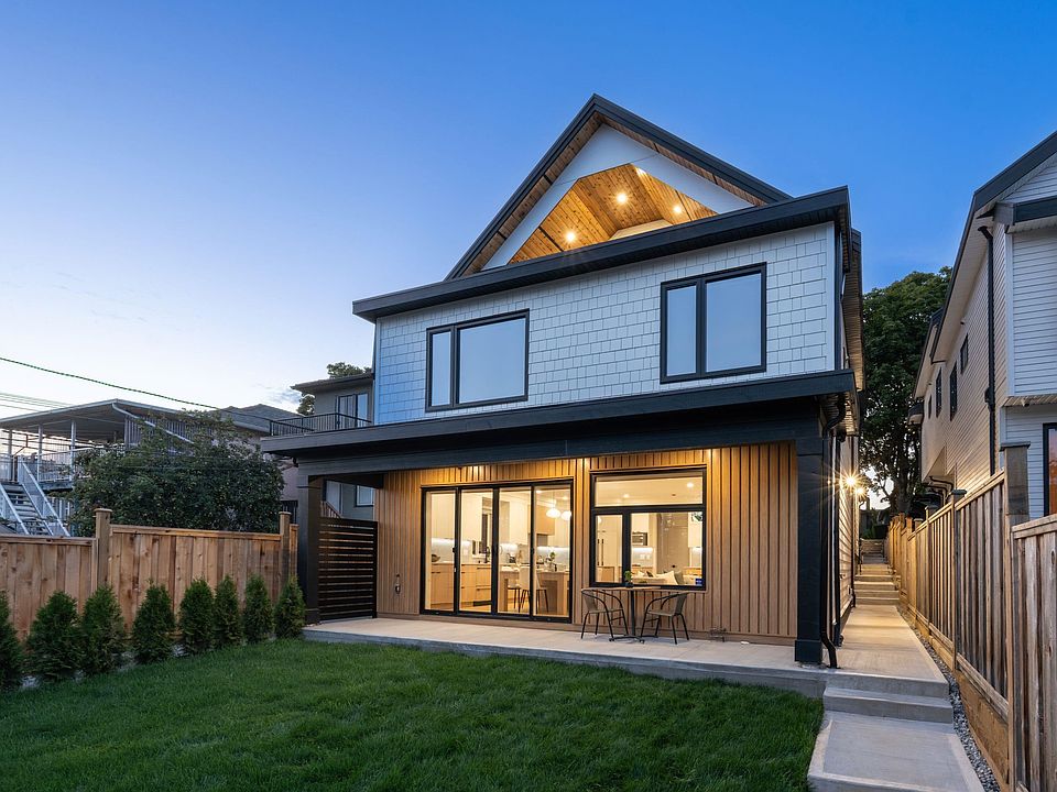 The Pender Vista Collection presents a brand new 4-bed, 4-bath ~1,700 sq.ft. rear 1/2 duplex, tucked away at the back of a rare 33×155 lot for privacy. Enjoy outdoor space and city & mountain outlooks from a private top-floor balcony. Interiors feature engineered hardwood, custom millwork, designer lighting, and smart home technology. The chef’s kitchen with built-in dining table boasts waterfall quartz, Fisher & Paykel appliances, gas cooking, and ample pantry. Spa-inspired tiled baths, A/C, and on-demand hot water ensure comfort. Minutes to parks, cafés, PNE, Adanac Bikeway, SkyTrain, and Brentwood Town Centre, with quick HWY-1 and Downtown access—quiet privacy meets city convenience.