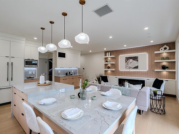 Private top-floor balconyEngineered hardwoodCustom millworkSmart home technologyBuilt-in dining tableWaterfall quartzFisher and paykel appliances