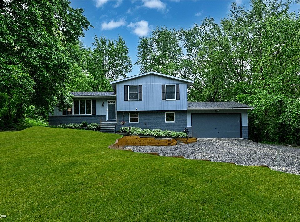 Pinch yourself! This is not a dream, but might be your dream come true! Tucked back on the very private dead end Ellen Dr. Just a 4 minute drive to the Springfield Bog Metro Park & 5 minutes to the Wingfoot Lake State Park. Did you know Wingfoot offers boating, archery, disc golf, a dog park, fishing, hunting, playground, picknicking, trails & a nature center? Pulling into the property, you will immediately appreciate the newly expanded driveway, w/ new retaining wall & fresh gravel! The main entrance brings you into the wide open floor plan, gorgeous solid Ash hardwood floors & crown molding. Spacious formal living room w/ corner fireplace (gas and ventless) & dedicated dining area. Then the star of the show, the incredible kitchen! Tons of handsome Kraftmaid cabinets (all soft close), tile backsplash, recessed & pendant lighting, stainless fridge, gas range, hood vent & dishwasher. Plus a massive 2 tiered, curved island w/ tile accent backsplash, built-in microwave & lots of seating! Step out the sliders to the deck & get ready to sign an offer! Absolutely amazing view of the huge back yard. Covered w/ real wood ceiling, fan, screened w/ Super Screen (ultra durable specialty screening system) TV mount & window into the kitchen (perfect pass through). The deck extends to an open area for the grill & steps down to the yard. Back inside to check out the 2nd floor. Master bedroom w/ access to the bathroom & 2 additional bedrooms. Full bath features tile that spans the floor, walls & shower surround, also a nice vanity & new lighting. To complete the lower level is a large family room w/ garage access, 4th bedroom or office & spectacular full bathroom! Plank tile wall, custom tile shower, modern sink & cool shelving nooks finish this bathroom. Down one more level for great storage, mancave or workshop along with a laundry area. Out back is a large shed & outbuilding/garage too! Call for more updates, details & to get your showing scheduled ASAP!