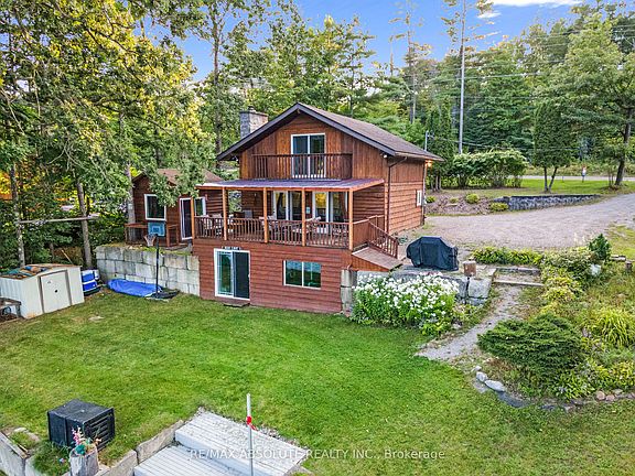 This two bedroom home presents a warm and inviting chalet style with 100' of frontage on the Madawaska River. Experience the opportunity to explore miles of river from this pleasant abode. The interior offers large living & dining room area. Updated Kitchen with large windows and large covered porch offering breathtaking views of the river. Main floor 3 piece bathroom with shower, vanity & toilet has been fully renovated in 2025. The primary bedroom offers a 2 piece bathroom, walk-in closet & balcony overlooking the water. Spacious second bedroom. The lower lever offers a walkout, houses the propane furnace & hot water tank. The lower level also has a cold storage room and plenty of space to finish for future enjoyment. Enjoy this home in all four seasons, with golf and skiing conveniently located nearby. The public boat launch at Burnstown beach is available for the water sport enthusiast. Bunkie perfect for guests & entertaining. Large shed. Furnace brand new (June, 2025), Bunkie 2022. 24 hour irrevocable on all offers