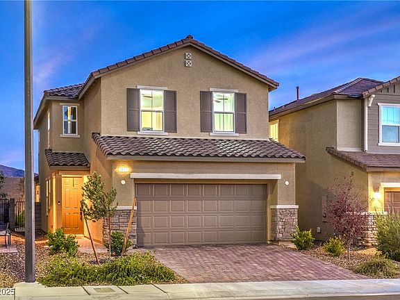 This stunning two-year-old Inspirada home offers no neighbors behind and beautiful desert views. It has 3 bedrooms, a versatile den downstairs, a spacious loft upstairs, and 3 bathrooms. Designer upgrades include soaring ceilings, quartz kitchen counters, recessed lighting, a walk-in pantry, single-basin undermount sink, Whirlpool appliances, and soft-close cabinets with pull-out shelving. Enjoy an oversize laundry room on the 2nd floor with natural light, a tankless water heater, water softener, garage storage, dual closets in the primary bedroom and built-in bookcase. The backyard is perfect for entertaining with desert landscaping, pavers, a covered patio, outdoor fan and lighting, plus lush artificial turf. Conveniently located near top-rated schools, shopping, and dining. Offers all the Inspirada amenities.
