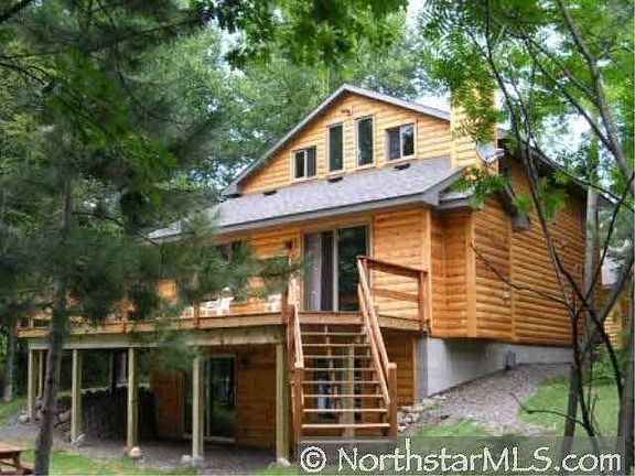 Beautiful log sided 3BR/3BA home with 100' of frontage on North Sand Lake. Features 2 car garage, open floor plan, knotty pine interior, hickory cabinets, 2 stone fireplaces & finished walk-out basement with family room and sauna. Large deck to enjoy.