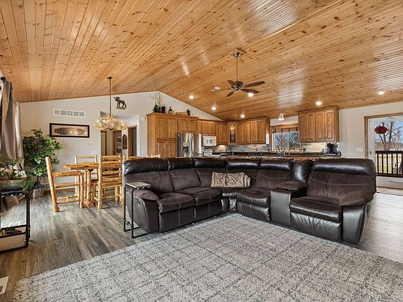 This stunning walk-out rambler features 4 spacious bedrooms, 3 bathrooms, and main floor laundry. The primary suite offers dual sinks, a jetted tub, tiled shower and sliding barn door. All counters in the home from the kitchen to the mud room are granite! But wait, there is no need to make the 4th bedroom into the workout/office, because this home has both! A main floor office, plus a work-out room, and storage room! The main floor's open concept seamlessly blends the living, dining, and kitchen areas, creating the perfect space for entertaining guests or spending time with family. The lower level also is great for entertaining or relaxing with the built-in bar, billiards area, and stone fireplace. While the walk-out patio provides easy access to the outdoors, where you can enjoy the fresh air, wildlife, beautiful views and evening campfires in the privacy of your backyard. Plus, who couldn't use the 36x40 heated garage!