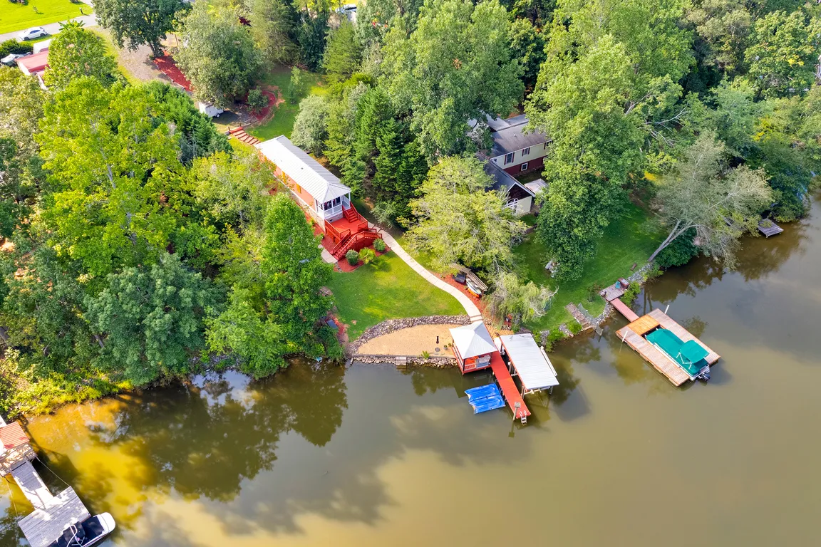 Lake norman waterfrontCovered dockside barMultiple kayak racksBasketball courtOpen floor planPebbled beach areaOutdoor shower