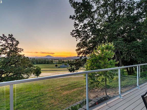Stunning views and vistas! This idyllic custom farmhouse has everything you need for peaceful country living with the most amazing west facing deck to entertain you with views of the pastoral valley, Spencer Butte, and incredible sunsets! This expansive country home has spacious and versatile living areas, built-ins, a flexible floor plan, two family rooms plus a den/office, and a gorgeous front sunroom with wraparound windows, skylights, and a private patio. The remodeled gourmet kitchen features new stainless steel appliances, quartz counters, cook island, pantry, and a formal dining room with a wall of windows for year round views. Oversized primary bedroom suite with walk-in closet and full bath with walk-in shower and soaking tub. Large laundry room with added utility room and abundant storage throughout. The newly paved driveway leads you up to the 3 bay 38x38' shop with a concrete floor, electricity, high end back-up generator, and RV parking. Such a stellar location sitting atop a knoll with sweeping verdant acreage and only a short commute to town and Pleasant Hill schools. Plenty of space for everyone and everything with a secure gated entry and security system. Well maintained with lots of updates and move-in ready!