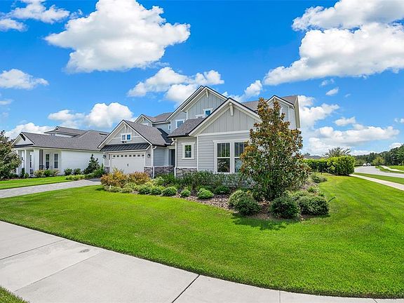 Experience elevated living with over 3,916 square feet this home offers a versatile layout ideal for everyday living and entertaining. Luxury and comfort come together in this nearly new Craftsman-style pool home, ideally situated on a premium corner lot in the sought- after Oakmont community. A brick-paver driveway, framed by both a 2-car and additional 1-car garage, sets the stage for this beautifully designed 5-bedroom, 3.5-bath residence, complete with a dedicated office with closet (or optional 6th bedroom) for ultimate flexibility. From the moment you enter, you’ll notice the thoughtful craftsmanship and open design that perfectly blends indoor comfort with Florida’s outdoor lifestyle. Towering two-story windows flood the entryway with natural light, highlighting the soaring ceilings and dramatic catwalk above. At the center of the home, the expansive great room flows seamlessly into the gourmet kitchen, making it an entertainer’s dream. The chef’s kitchen showcases a large granite-topped island, stainless steel appliances with a 5-burner gas cooktop, walk-in pantry, and under-cabinet lighting. Retreat to the private primary suite, where you’ll find an oversized custom closet with wood shelving and a spa-like bath featuring dual granite vanities, a soaking tub, and a walk-in shower. Upstairs, a spacious loft-style catwalk leads to a cozy reading nook and a versatile bonus/flex room. Four generously sized secondary bedrooms are also located on this level, with two sharing a convenient Jack-and-Jill bath. Step outdoors to the expansive covered lanai, complete with a summer kitchen featuring a gas cooktop, grill, refrigerator, sink, ceiling fan, and paver flooring. The screened-in pool and spa create the ultimate private retreat, framed by a beautifully landscaped, fenced backyard. Additional highlights include crown molding, recessed lighting, wood-look porcelain tile flooring, triple-zoned dual HVACs, upgraded internet/security systems, gutters, irrigation, landscape lighting, and a premium solar panel system powering both the home and pool. Oakmont is known for its vibrant community feel and world-class amenities: tennis courts, amphitheater, resort-style pool, basketball courts, activity field, banquet spaces, and more—all just minutes from the University of Florida and Shands Hospital. With its unbeatable blend of location, lifestyle, and luxury, this home is truly a rare find. Schedule your private showing today!