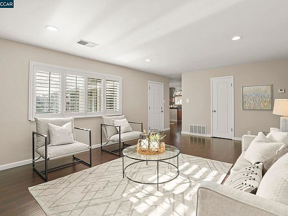 This beautifully updated ranch-style home is located in the highly sought-after Sun Terrace Neighborhood. No detail has been overlooked in the updates. The open-concept kitchen is perfect for cooking and entertaining, featuring a bar, seating, and a dining area with easy access to the outdoor patio, ideal for hosting gatherings and enjoying al fresco dining. The spacious living room boasts a wood-burning fireplace and offers plenty of room for relaxing with family and friends. The home includes three bedrooms and two updated bathrooms. Additional features include dual pane windows and sliders, recessed lighting, and elegant wood shutters. Conveniently situated near an elementary school, this home is perfect for families and commuters alike, with North Concord BART just around the corner. Shopping at The Veranda, which includes Whole Foods, a movie theater, and numerous restaurants, is just one exit away. This home is a must-see! OPEN HOUSE SUNDAY 3/23 1:00-4:00 PM
