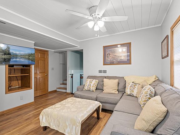 Not your typical "cookie cutter" house- Originally built in 1954, addition built in 1974. Property is located on a quiet cul-de-sac. This home has a fabulous custom kitchen with new S/S appliances and plenty of cabinet space. 3 large bedrooms plus a full bath on the upper level. Lower level has a cozy family room with custom bar area and freestanding gas fireplace that offers the charm of an old wood stove, plus a 4th bedroom. The large backyard is completely fenced, and includes the storage shed. Home exterior is steel siding. Roof and HVAC replaced in 2021. Large concrete parking pad for boats, RVs, or extra parking space in general. This home is perfectly situated between Riverdale in Coon Rapids, and all that the heart of Blaine has to offer on Hwy 65. It is also conveniently close to Bunker Hills Regional Park and local area schools.