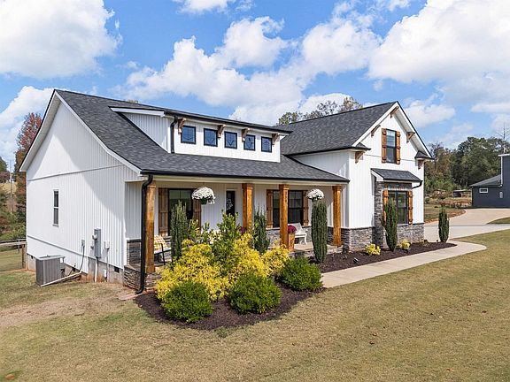 This well-maintained 3-bedroom, 2-bath custom home offers an inviting open floor plan with modern finishes throughout. The main living areas feature luxury vinyl plank flooring, with carpet in the flex room and stairs, and tile in the bathrooms and laundry. The kitchen boasts upgraded white shaker cabinets, quartz countertops, a white subway tile backsplash, pantry, large island, and stainless steel appliances. The dining area, accented with wainscoting, opens to the spacious great room featuring raised ceilings, 6" windows, and a stunning fireplace with rock and shiplap surround. The primary suite includes a sitting area, large walk-in closet, double vanities, and a beautifully tiled shower. Enjoy your morning coffee on the covered back deck overlooking the pond. The fenced-in backyard provides both privacy and space for pets or outdoor activities.