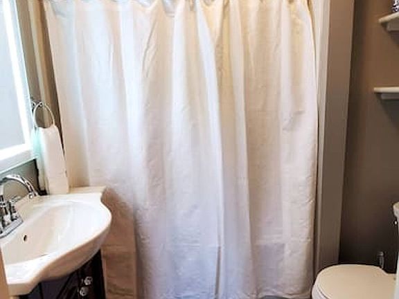 The spacious bathroom adds a touch of comfort, while shared amenities include a beautifully furnished Victorian front porch, ideal for relaxing outdoors, and laundry facilities located in the basement.