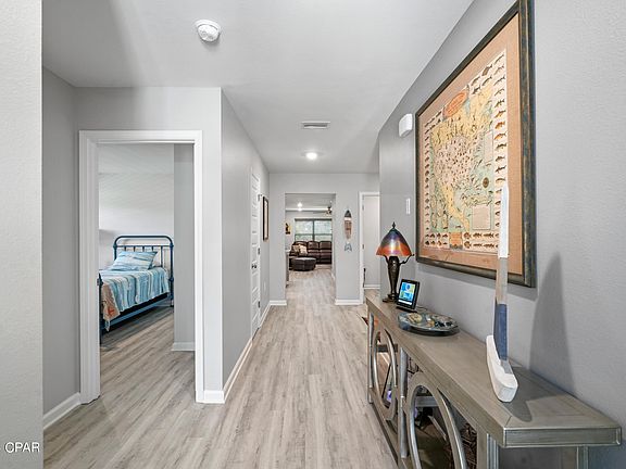 Welcome to 358 Cove Lane, a stunning 4-bedroom, 2-bath home nestled in the tranquil Palmetto Bluff community of Port St. Joe, FL. Spanning 1,787 sq ft, this meticulously designed residence is tailored for both comfort and entertainment. Step inside to discover 8' ceilings and engineered vinyl plank flooring throughout, creating a seamless ambiance from room to room. The kitchen is a culinary delight with striking granite countertops, tiled backsplash, sleek white cabinetry with an upgraded sink & faucets in the spacious center island which offers ample storage. Stainless steel appliances include a GAS range, microwave, dishwasher, and upgraded refrigerator, complemented by a generous pantry for all your storage needs. Enjoy endless hot water with a NEW GAS Rinnai tankless water tank.