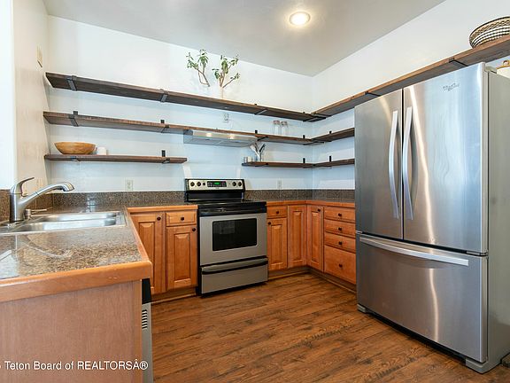 This well located townhome sits in a quiet, beautifully landscaped community with easy access to Driggs and a beautiful community pathway along Teton Creek! Newer laminate flooring in the lower level, granite tile counters, and a wood burning fireplace give a quality feel to this well located unit. Enjoy the freedom of townhome living. The HOA covers exterior maintenance, landscaping, and plows your driveway in the winter. Enjoy the convenience of a quick trip to Grand Targhee whether you are driving or taking the shuttle! A bike path takes you into town to enjoy shopping and local restaurants! Rentals are limited to 30 days or more.