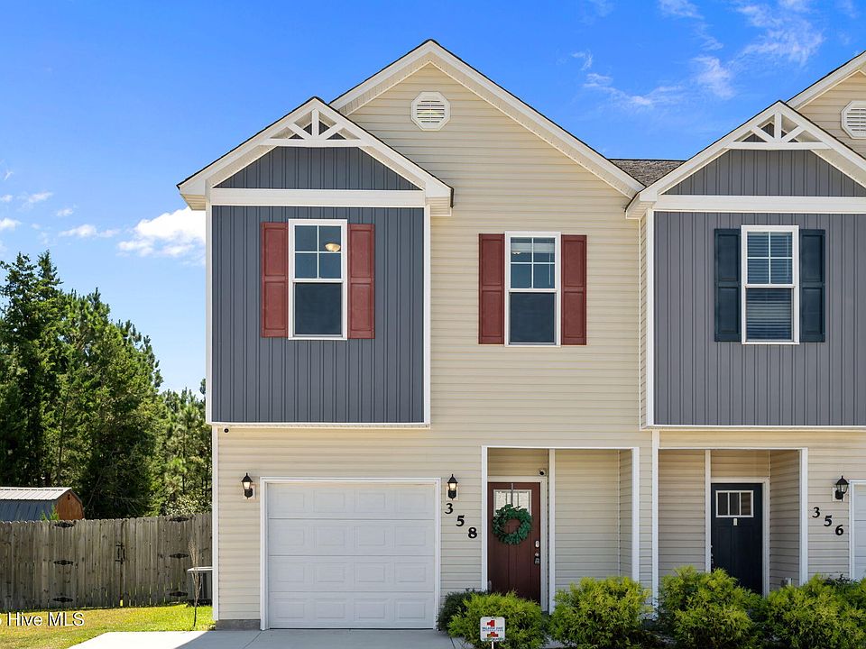 This townhouse is located just off Highway 17, convenient to Wilmington or Jacksonville and minutes to Stone Bay/Marsoc and the beaches of Topsail Island. The Racheal floor plan is 3 bedrooms 2 1/2 bathrooms and a one car garage with over 1550 heated square feet. Home features an open floor plan and vinyl first floor, stainless steel appliances, electric stove/oven, dishwasher, built in microwave, and refrigerator. Kitchen has tons of cabinets, a pantry, and breakfast bar. Sliding glass door in the living room leads to a covered back patio and one of the largest lots in the neighborhood at .22 acres. Complete with fully fenced in back yard and double gate side entry for additional access and storage. All 3 bedrooms are upstairs with 2 bathrooms. Spacious master bedroom with huge walk-in closet. Master bath has dual vanity and large walk-in shower.