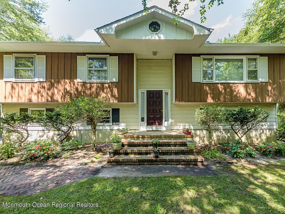 Lovely 4 BR 2 Bath Bi-Level in desirable Freehold is just awaiting your personal touch! Situated on a plush lot of protected wood lands abutting to Monmouth County Conservation w/2400+SF of living, this home offers space & serenity aplenty! Step up to the main lvl to find an open & accessible layout, easy for entertaining! Spacious & bright Living Rm feats HW floors that extend into the Formal Dining Rm, along with plenty of natural light throughout! EIK offers a wealth of cabinetry, counter space & access to the deck- modernize it to your liking! Down the hall, find 3 generous Bedrooms with ample closets, inc the Master Suite with private bath! Downstairs, a large Family Rm w/beautiful brick fireplace to cozy up to + dbl doors to the covered Patio. Breathtaking Sunroom feat soaring