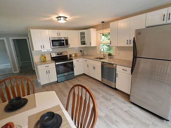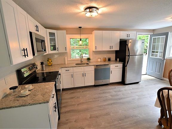 Welcome home! This 4 bedroom 1 bath raised ranch has many recent updates. You'll love the new kitchen with granite counter and stainless appliances. Life proof luxury vinyl plank flooring seamlessly extends from the kitchen into the living room and bathroom. Bedrooms have new carpeting and ample closets. New roof would be perfect for solar panels for minimal utility and heating bills or stay warm on those cold winter nights with the wood stove. Outside you'll find deck perfect for summer entertaining. Several outbuildings including one set up for chickens. Quiet country road and plenty of off street parking. This house is ready to move into and wont last.