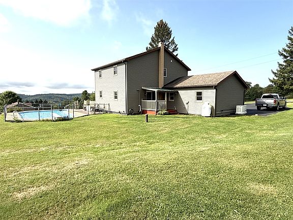 Who doesn't want LOW TAXES, ACREAGE, and an IMMACULATE two story quintessential country home! Situated on 4.50 acres and filled with character, this property is inviting and offers a welcoming flow & comfort throughout. The exterior features a charming covered front porch, a sparkling in-ground swimming pool, an expansive side deck, & a covered deck off the kitchen for barbecuing year round. Inside, Pergo Timbercraft flooring & newer carpeting, large windows, a recently renovated half bath with a new vanity & wainscoting panels, and an entertainers kitchen with stainless appliances, double ovens, & a gas cooktop range that opens to the dining area with a bay window. A wide hallway upstairs with spacious bedrooms & a large full bathroom. A water softener, whole house Generac generator, energy efficient split heat pump/air conditioning units, and on-demand hot water. Surrounded by rolling hills & peaceful panoramic views in every direction. A rare opportunity to own this special home.