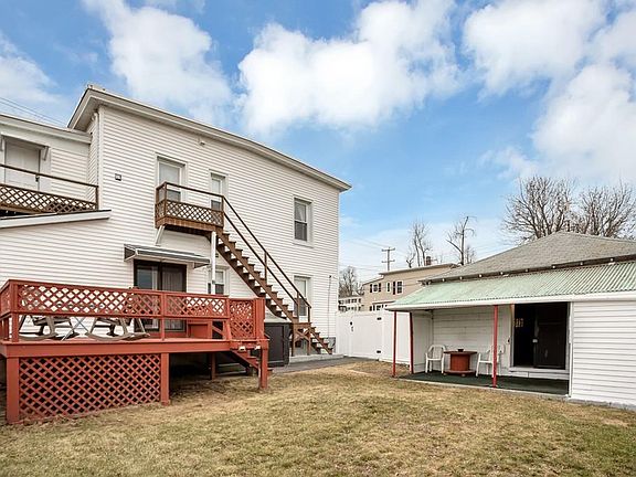 HIGHEST/BEST OFFERS DUE BY NOON ON 3/17. This two family home has been lovingly and well maintained by the same owners for over 55 years. Are you looking for an owner occupied or investment property? Do you have a business and need extra garage space and parking? Or, would you like to earn extra income by renting out the three bay garage? This could be the perfect investment for you! Neat, clean and full of natural light throughout. Each unit is approximately 1,000 sq.ft, each with three bedrooms with large closets, spacious living room, eat in kitchen, bathrooms have been updated, each unit has an enclosed porch, some hardwood flooring. First floor has a slider off the kitchen to a large deck and fenced in yard. Basement is clean with updated electrical panels (2), hot water heaters (2), new water main, storage and laundry hookup. All appliances convey. Maintenance free exterior with vinyl siding and replacement windows. Just needs some cosmetic updating or rentable as is.