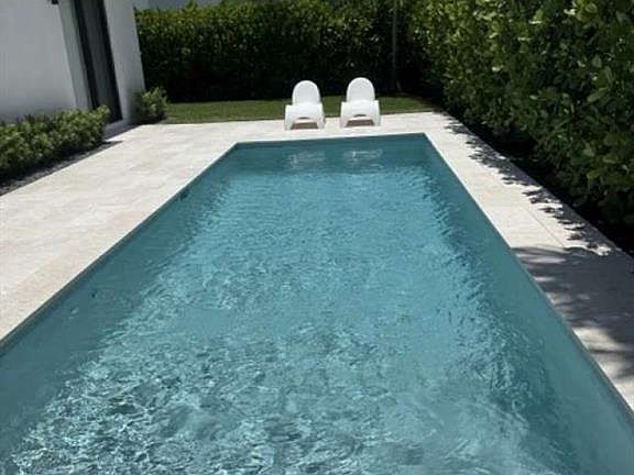 Beautiful Mid-Century home in Trendy SoSo section of West Palm Beach three blocks from intercoastal waterway. Recently remodeled by a luxury builder. This 3 Bedroom/ 2 1/2 Bath is Turn-Key, ready to entertain in the private backyard. Everything new-Impact windows and doors, 200 Amp Electrical service-wires undergrounded, new kitchen addition/laundry room, new baths, roof, AC, security system with camera, newly painted interior and exterior, new salt water filtration pool, shell-stone deck, new driveway, fencing,and all new landscaping with irrigation system. One car garage. Minutes to Worth Ave and the airport.