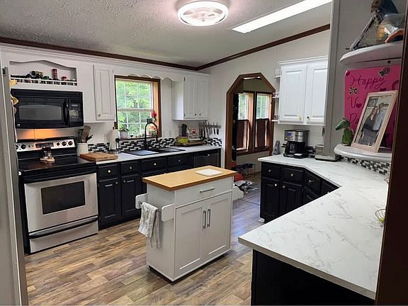 Gas fireplaceLarge back deckNew kitchen counter topsRecently updated flooringFarmhouse sinkCovered front porch