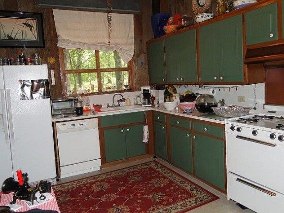 Want to live in a cabin surrounded by woods with all the modern conveniences? This wooded 4+ acres has paved frontage, (less than 1 mile from Skyline School). There is a pretty drive-way through the trees to this 1100 sq ft cabin that is sided with oak barn wood. There is an attached 2-car garage/workshop and a huge deck that leads from the house to a screened in room with electric (great place to eat)even has a ceiling fan. The house has 2 bedrooms, 2 baths, wood stove with back up, beamed ceilings, cedar lined closets, metal roof, large library room. The inside of this cabin is very neat and well cared for. Taxes are only $235 per year